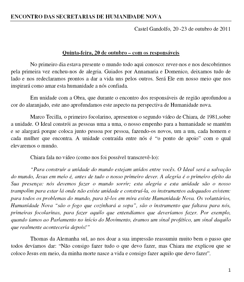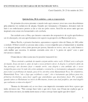 Fatos e fotos do Movimento Humanidade Nova, expressão civil do Movimento dos Focolares. ATENÇÃO: As fotos são mostradas na ordem invertida, das mais recentes para as mais antigas.